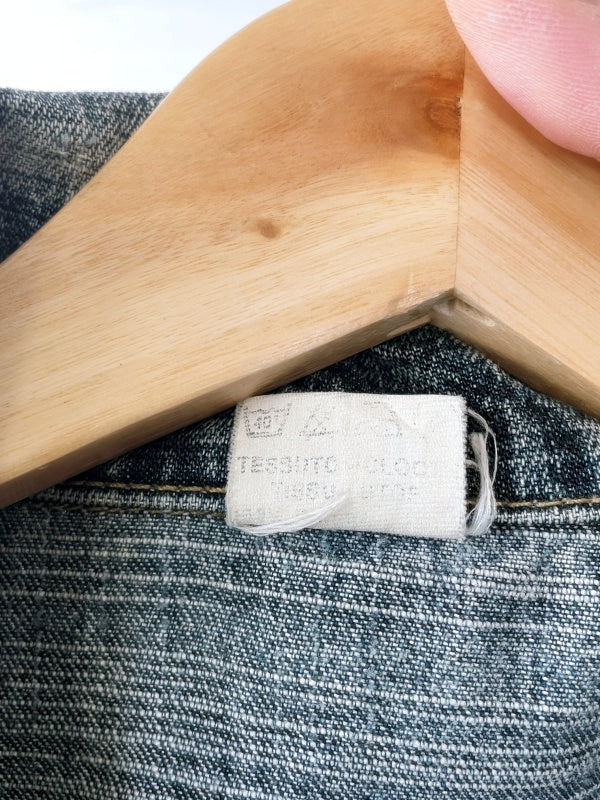 Made from high-quality Italian denim with a distinctive mid-blue wash , subtle fading, and contrasting seams.