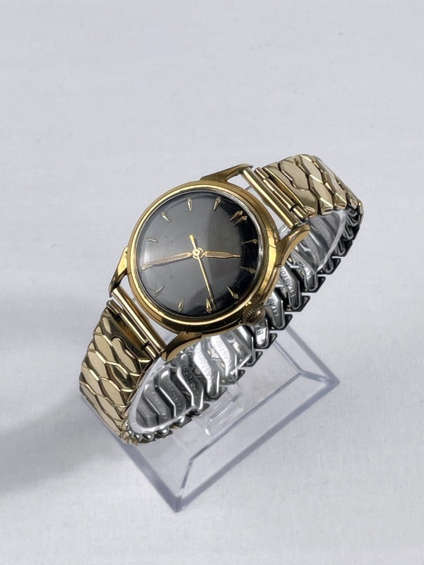 Oliva Trubis men's wristwatch – vintage hand-wound, gold-plated case, black dial