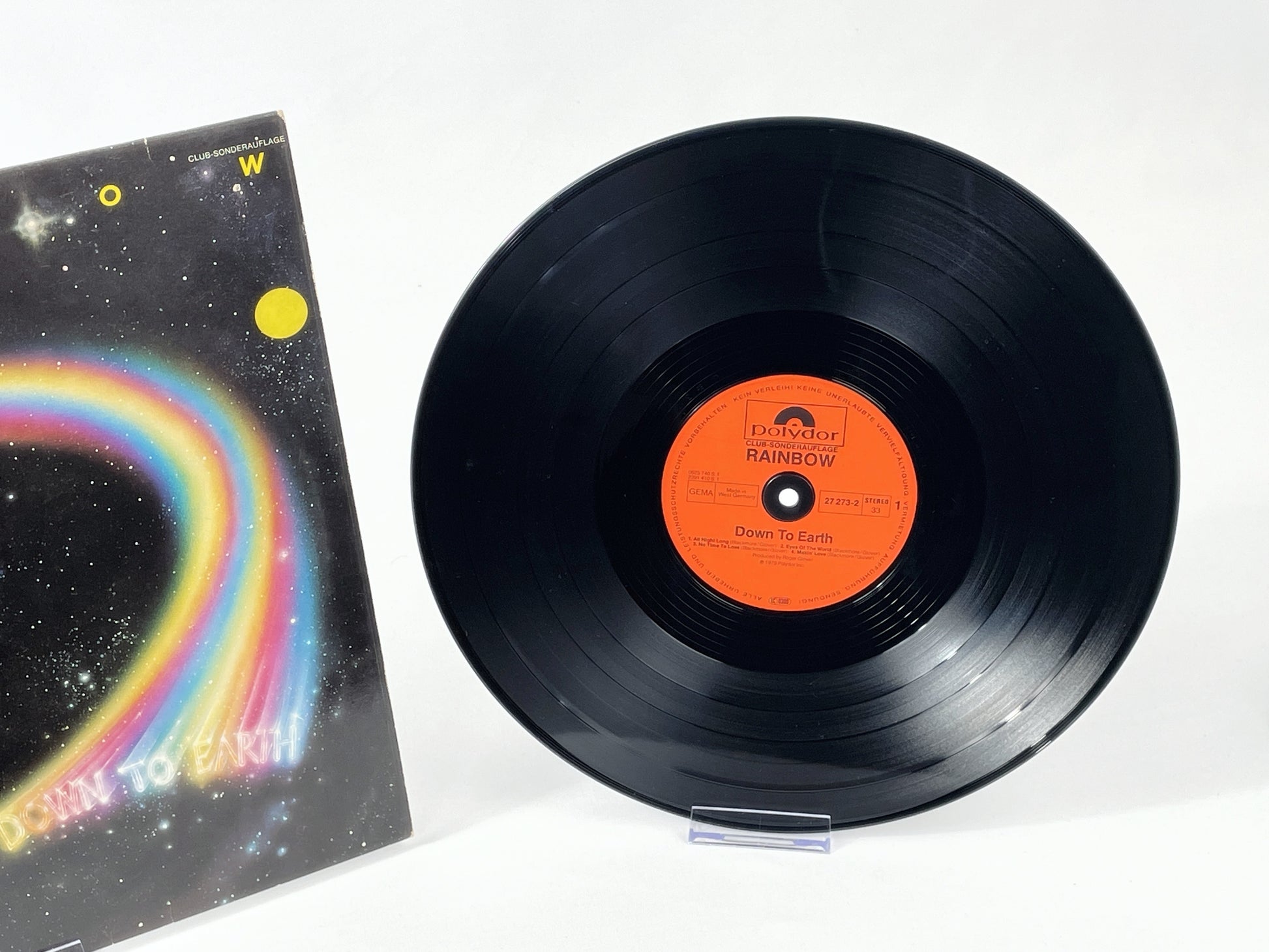 This Rainbow LP – “Down To Earth” (1979) – is a special club edition on Polydor. The album marks an important phase in the band's history: with Graham Bonnet as lead singer and hits like “Since You Been Gone” and “All Night Long,” the band reached a wider audience without abandoning the classic hard rock sound of Ritchie Blackmore (formerly of Deep Purple). The album was produced by Roger Glover, also known as the bassist of Deep Purple.