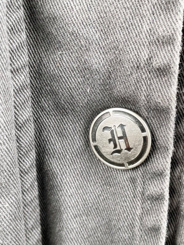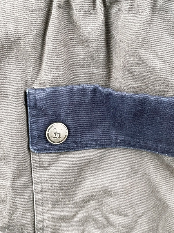 Stylische Harry Potter Jacke im Retro-College-Look, inspiriert vom Haus Slytherin aus der Zaubererwelt von Hogwarts. Die Jacke kombiniert ein robustes, leicht wattiertes Material in Grau mit marineblauen Details und weißen Streifen an den Ärmeln. Auf der Brust befindet sich ein aufgesticktes Slytherin-Wappen, auf dem Rücken das große Hogwarts-„H“. Der klassische Schnitt mit Druckknopfleiste, Kragen und großen Taschen erinnert an authentische Collegejacken – perfekt für Fans, Sammler oder für den Alltag mit dezenter Fandom-Note.