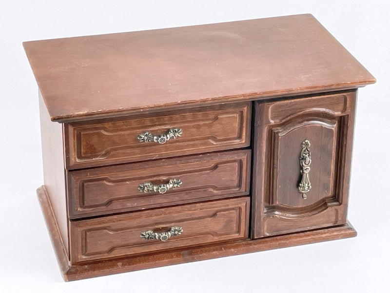 Holzschatulle Vintage Schmuckkästchen mit Schubladen und Tür, 70er/80er Jahre