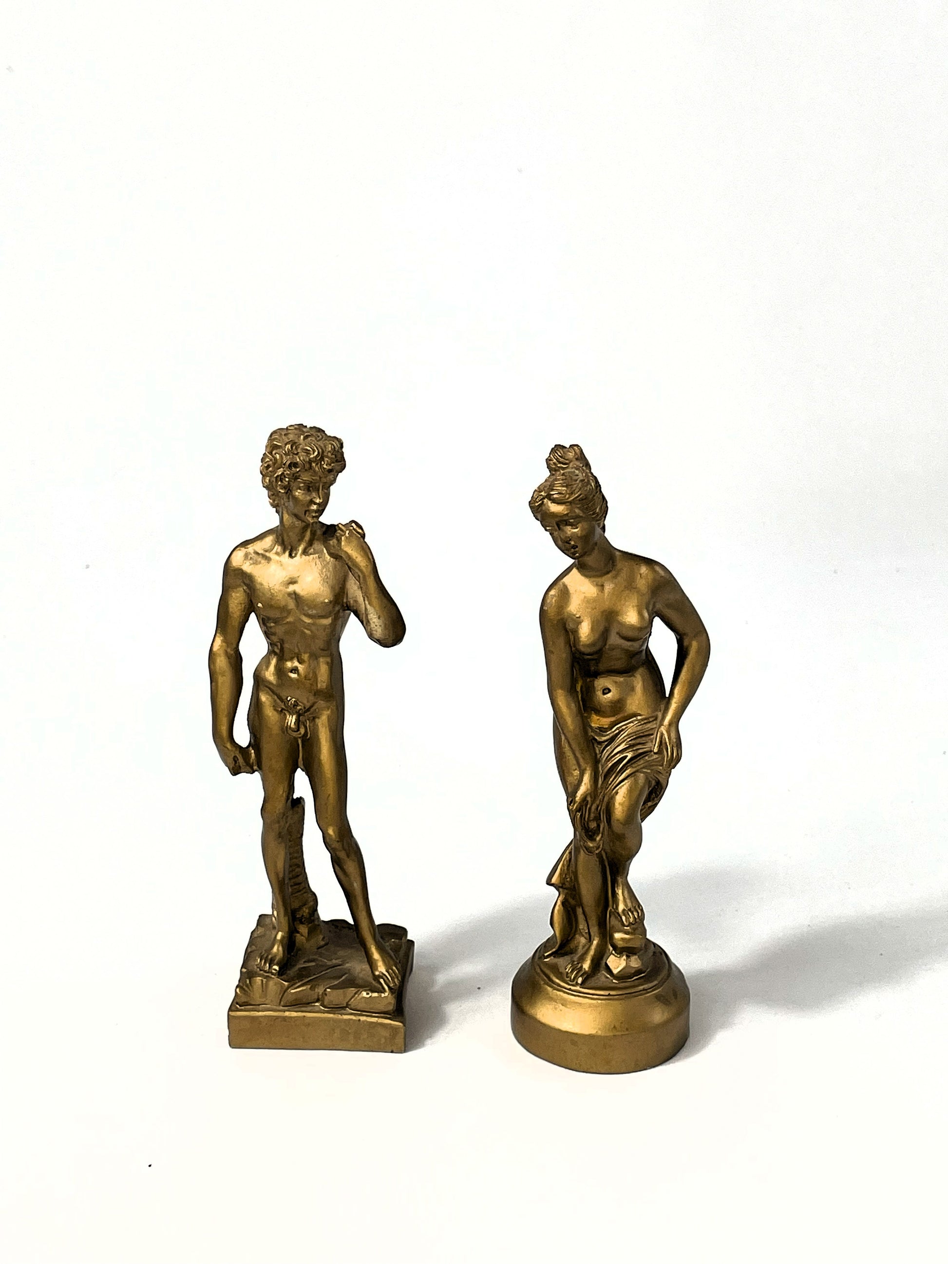 Italienische Skulpturen David & Venus - signiert Benini, Metallguss mit Goldpatina, ca. 16,5 cm, Vintage