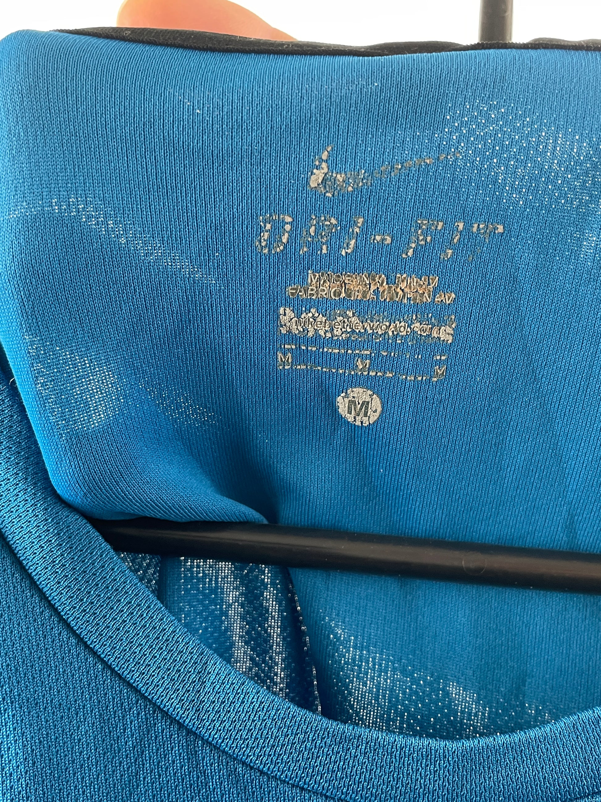 Die Nike Dri-FIT-Technologie wurde Mitte der 1990er eingeführt und zählt heute zu den bekanntesten Funktionsstoffen im Sportbereich. Shirts wie dieses aus der „Made in Vietnam“-Serie wurden in den späten 2010er-Jahren gefertigt, als Nike verstärkt auf recycelte Polyesterfasern setzte – ein Schritt Richtung nachhaltiger Performance-Wear.