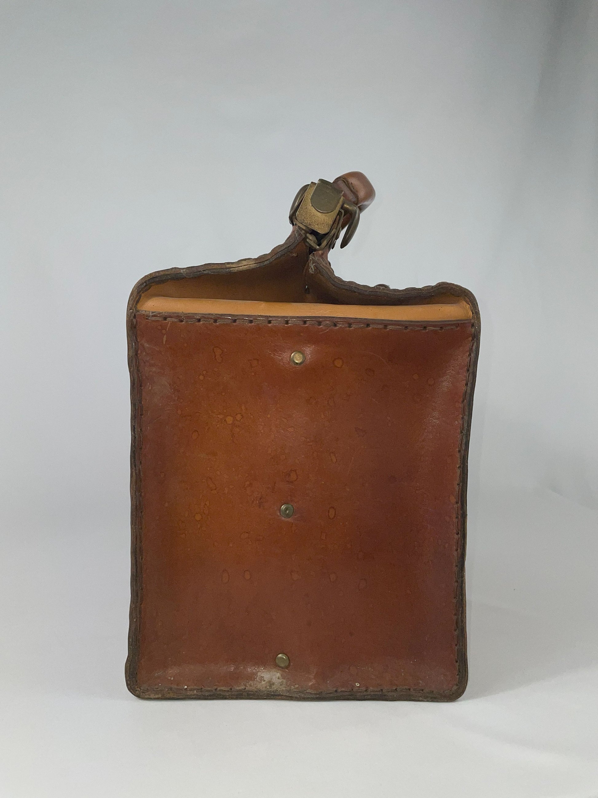Das dicke Echtleder zeigt eine schöne, authentische Patina, die über die Jahre gewachsen ist und den besonderen Charme von Vintage-Leder ausmacht. Die Tasche bietet dank ihrer stabilen Form und des geräumigen Innenraums viel Platz und eignet sich nicht nur als Sammlerstück, sondern auch als stilvolles Accessoire oder Dekorationsobjekt.