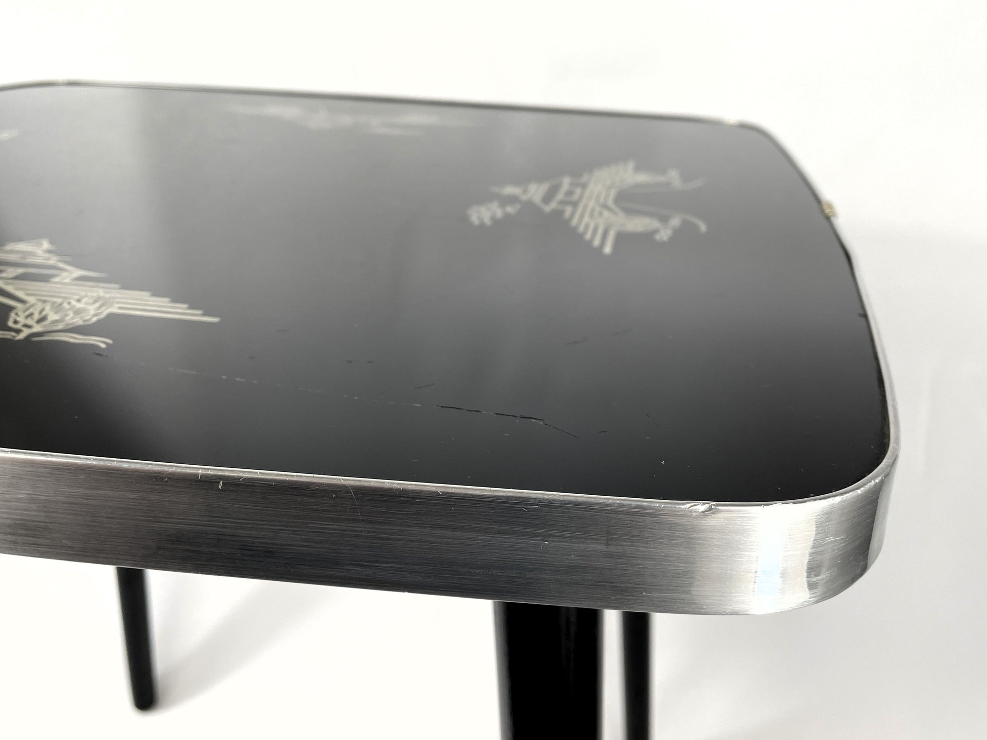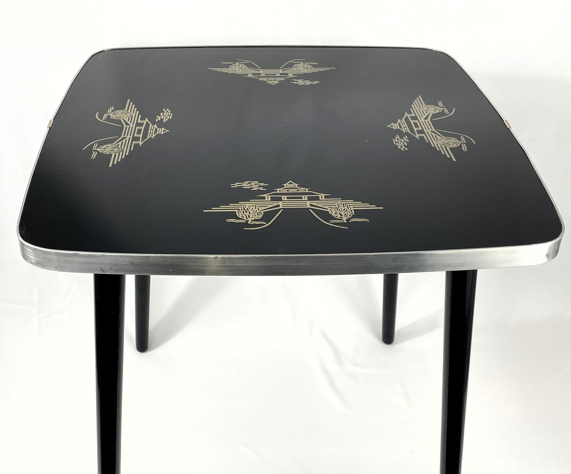 Beistelltisch DDR Albert Busch - Schwarze Tischplatte mit Golddekor, Mid-Century Design